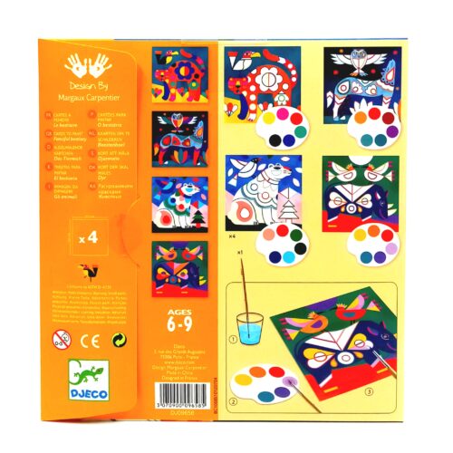 Διαλέξτε μια από τις ακουαρέλες με θέμα τα πολύχρωμα άγρια ζώα και χρωματίστε την εικόνα. Κάθε κάρτα έχει την δική της παλέτα με την ποσότητα χρώματος που απαιτείται για να ολοκληρωθεί η εικόνα. Το σετ περιλαμβάνει 4 κάρτες, 20×20εκ, για να ζωγραφίσετε, 4 παλέτες με χρώματα ακουαρέλας, ένα πινέλο και βιβλιαράκι οδηγιών. Μια διασκεδαστική και δημιουργική κατασκευή από την Djeco κατάλληλη για παιδιά από 6 έως 9 ετών.