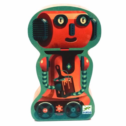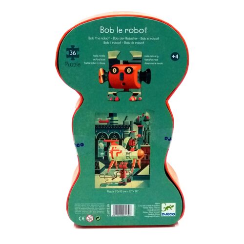 Παζλ της djeco με 36 κομμάτια άρτιας ποιότητας και κουτί σε σχήμα ρομπότ . Προτείνεται για ηλικίες από 4 έως και 6 ετών.