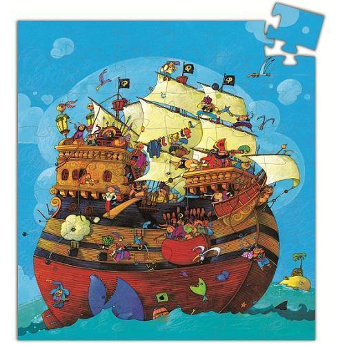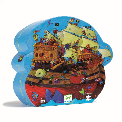 Παζλ της djeco με 54 κομμάτια άρτιας ποιότητας και κουτί στο σχήμα του πειρατικού καραβιού. Το χιουμοριστικό θέμα του παζλ με τα ζωντανά χρώματα προσφέρεται για παρατήρηση και δημιουργία μικρών ιστοριών. Το παζλ προτείνεται για ηλικίες από 5 και άνω .