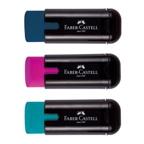 Ξύστρες με γόμα από την Faber Castell με τρεις επιλογές χρώματος.
